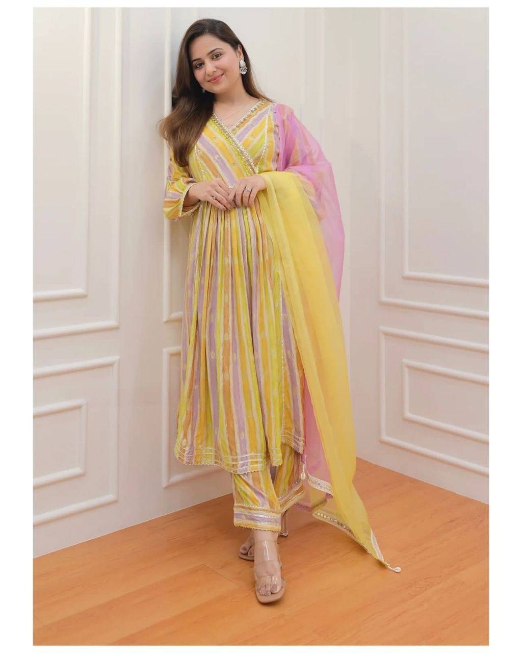 Gown length:- 50″ Pent length:- 40″ Dupatta:- 2.25